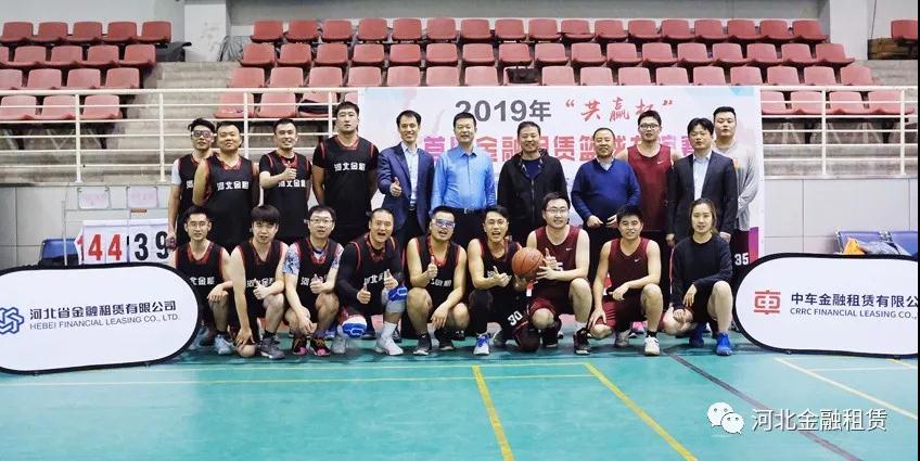 河北金租董事長徐敏?。ê笈庞椅澹?、監事長肖剛(后排右六)、副總裁李永德(后排右七)、工會主席石拴江(后排右四)等與籃球隊合影。