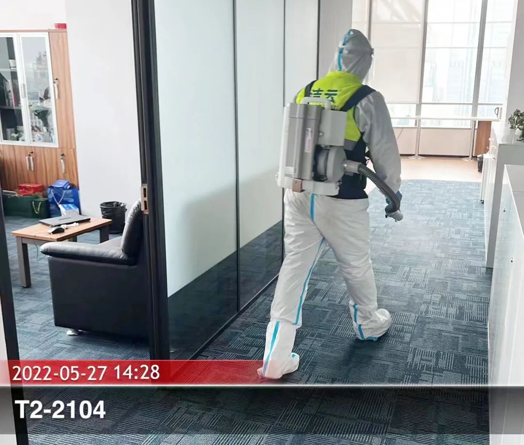 復工之前,對接物業(yè)方對辦公區(qū)域進行消殺,全面消毒,不留死角,讓同事們安心歸隊