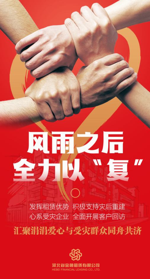 風雨之后,是災后重建的關鍵時期。河北省金融租賃有限公司(以下簡稱“河北金租”或“公司”)全力落實各級政府及監管部門的決策部署,及時出臺針對性政策,迅速投身災后重建工作,積極幫助受災地區企業解難紓困,以實際行動踐行金融工作的…